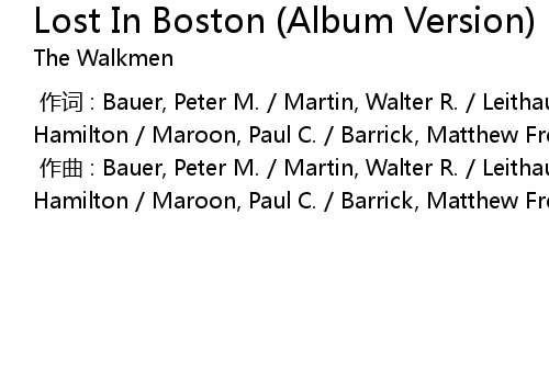 | [00:00.000] | 作词 : Bauer, Peter M. / Martin, Walter R. / Leithauser, James Hamilton / Maroon, Paul C. / Barrick, Matthew Frederick |