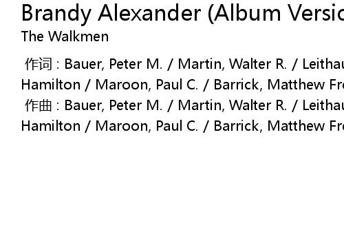 | [00:00.000] | 作词 : Bauer, Peter M. / Martin, Walter R. / Leithauser, James Hamilton / Maroon, Paul C. / Barrick, Matthew Frederick |