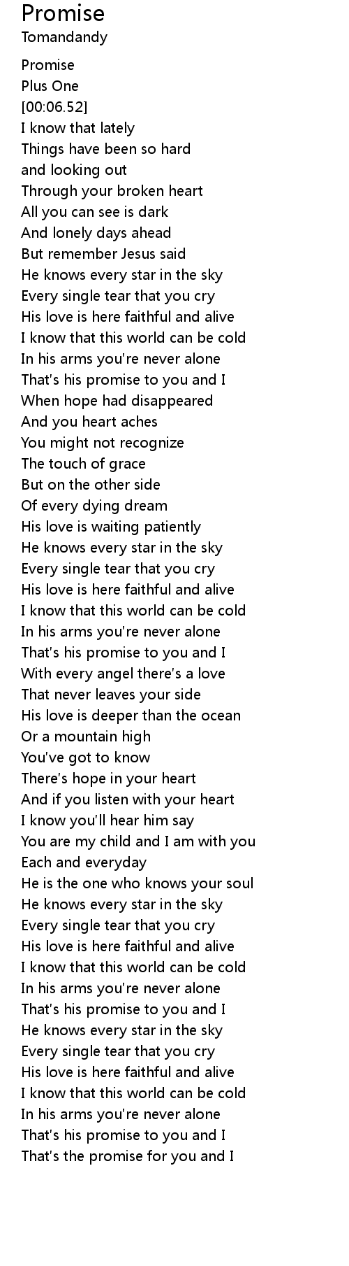 | [01:03.29] | That′s his promise to you and I |