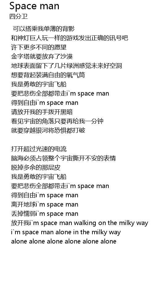 | diū diào nuò ruò i m space man | |