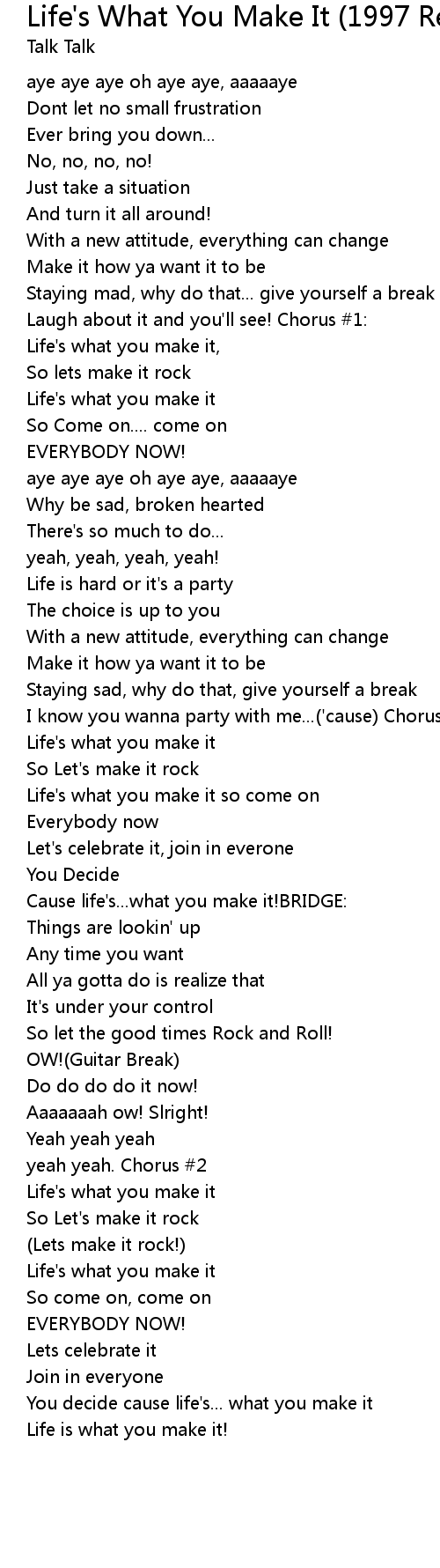 Life's What You Make It (1997 Remastered Version) Lyrics