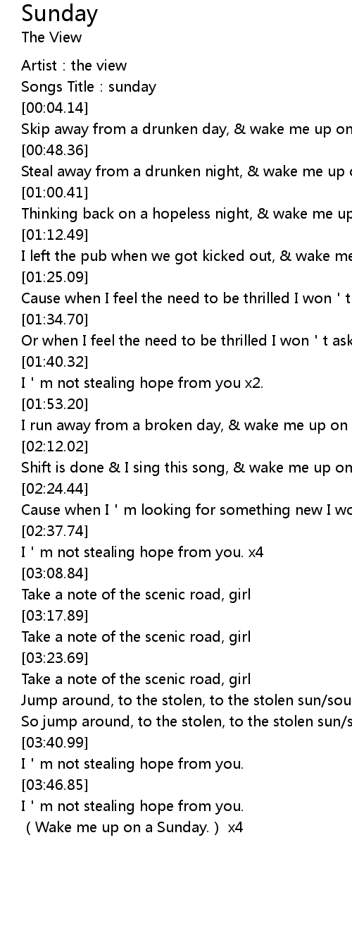 | [03:52.47] | Wake me up on a Sunday. x4 |