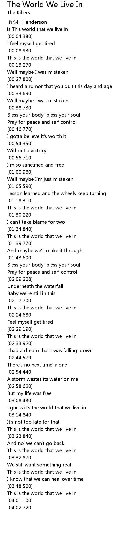 | [00:27.830] | I heard a rumor that you quit this day and age |