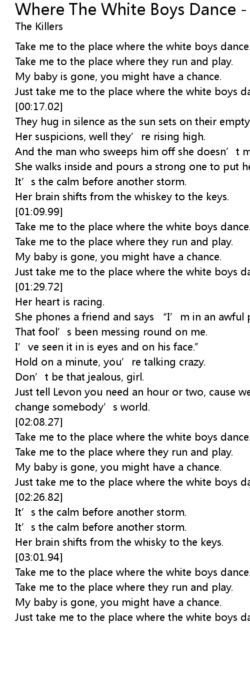 | [03:16.45] | Just take me to the place where the white boys dance |