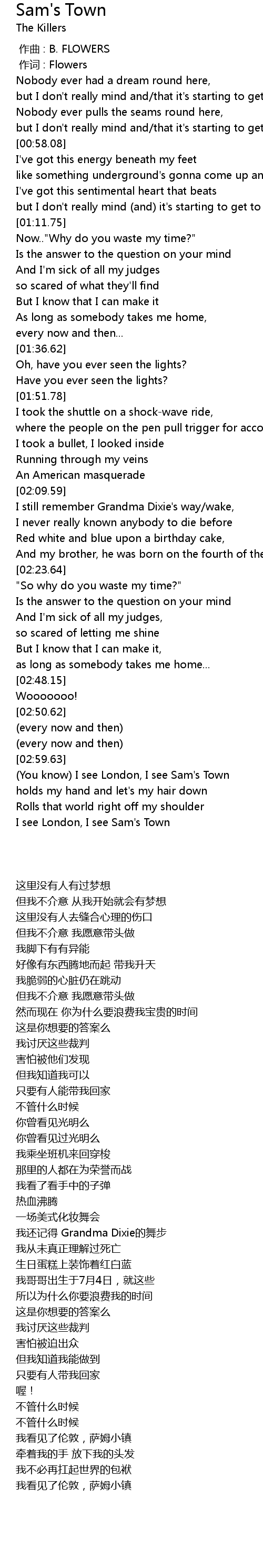 | [03:05.41] | (You know) I see London, I see Sam's Town |