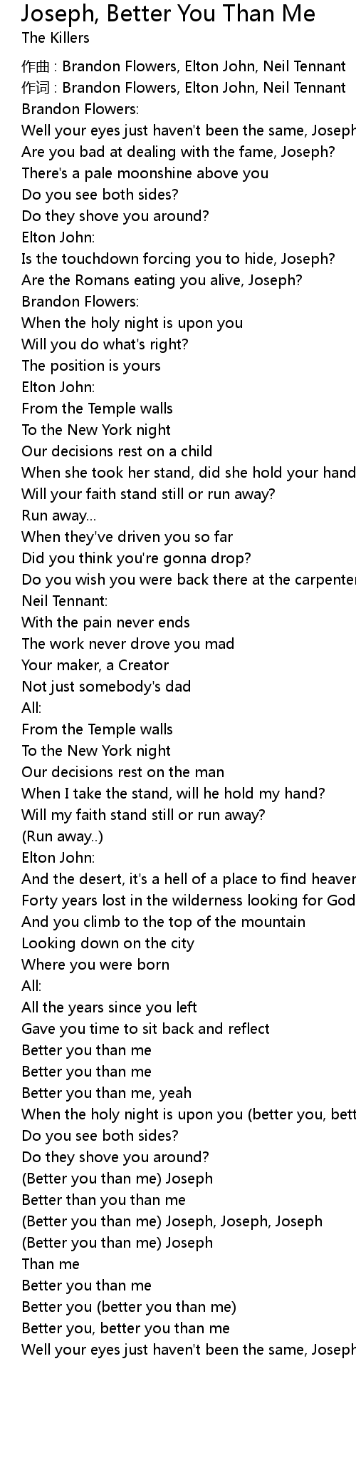 | (Better you than me) Joseph, Joseph, Joseph | |