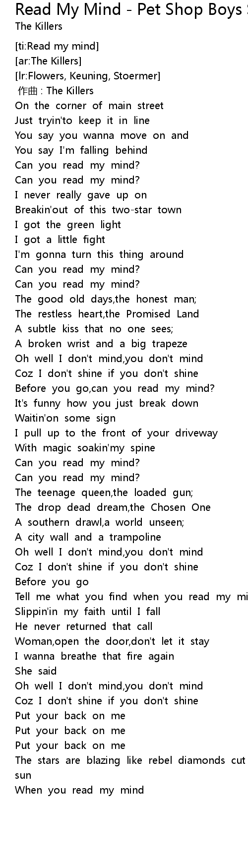 | Song | Read My Mind - Pet Shop Boys Stars Are Blazing Mix |