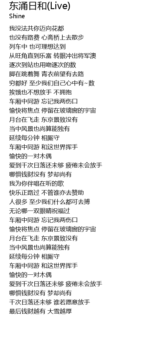 | [01:23.76] | yuè tái zài fēi zǒu dōng jīng jǐng zhì méi yǒu |