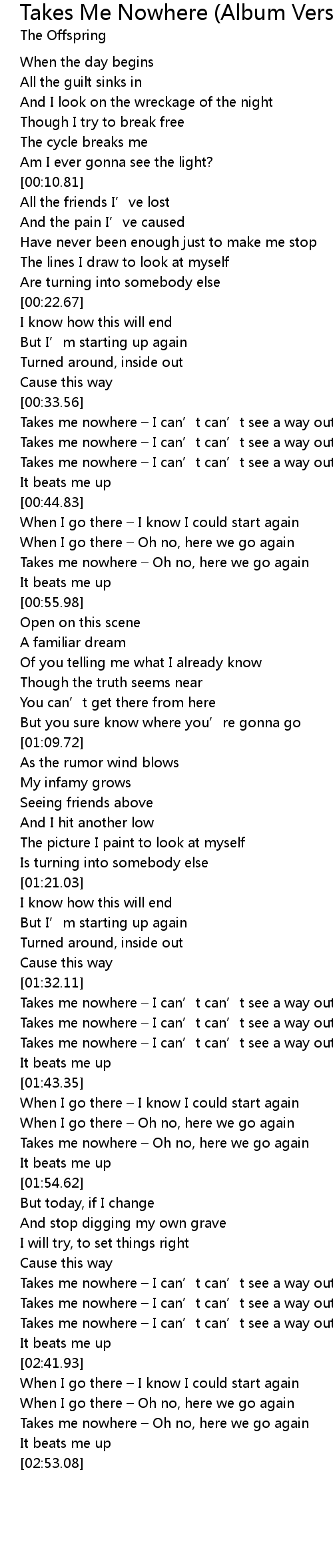 | [00:39.40] | Takes me nowhere I can' t can' t see a way out |