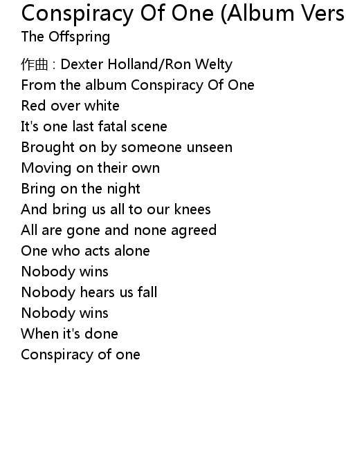 | Song | Conspiracy Of One (Album Version) |