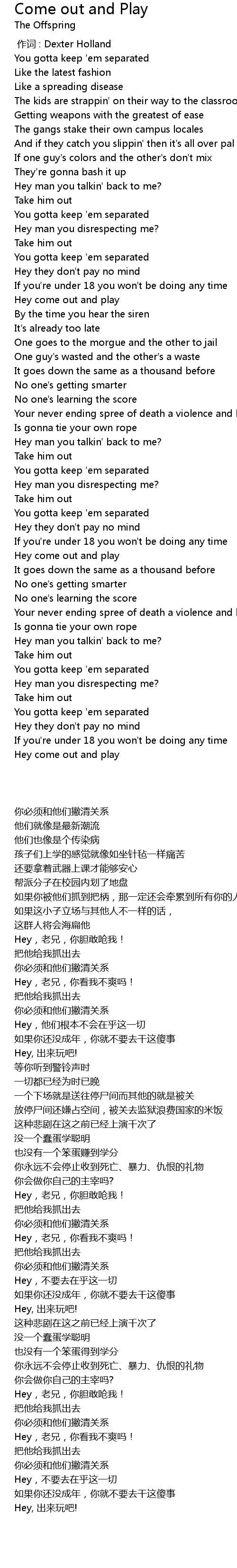 | [00:00.00] | 作词 : Dexter Holland |