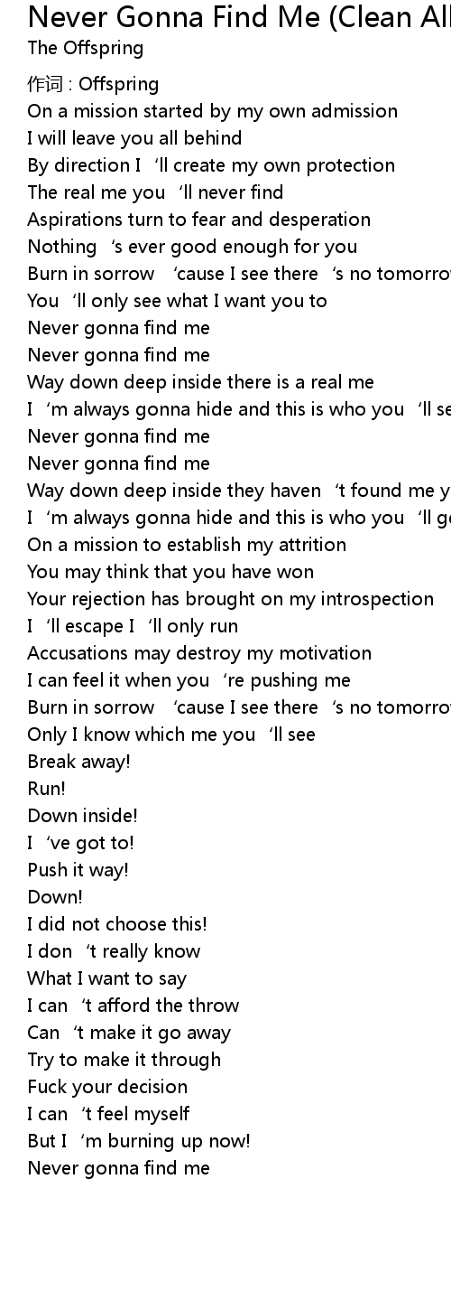 | Song | Never Gonna Find Me (Clean Album Version) - Explicit Album Version |