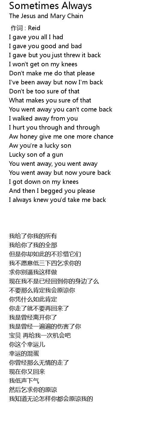 | [00:51.77] | You went away you can't come back |