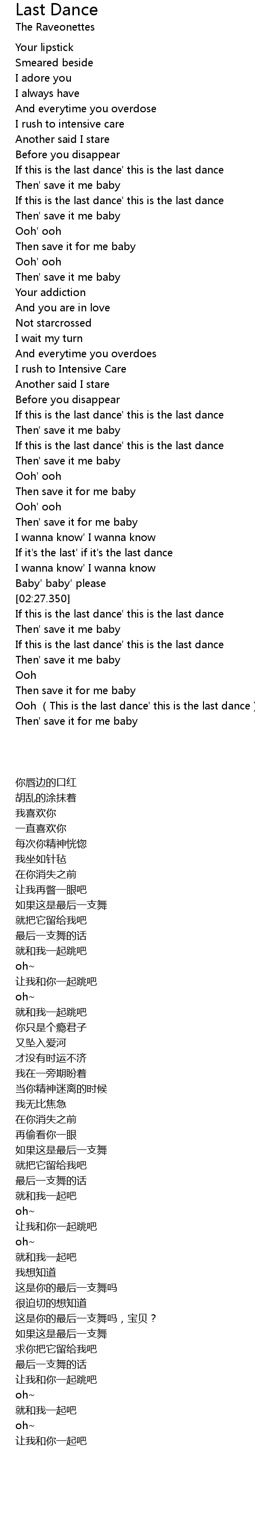 | [02:43.000] | If this is the last dance' this is the last dance |