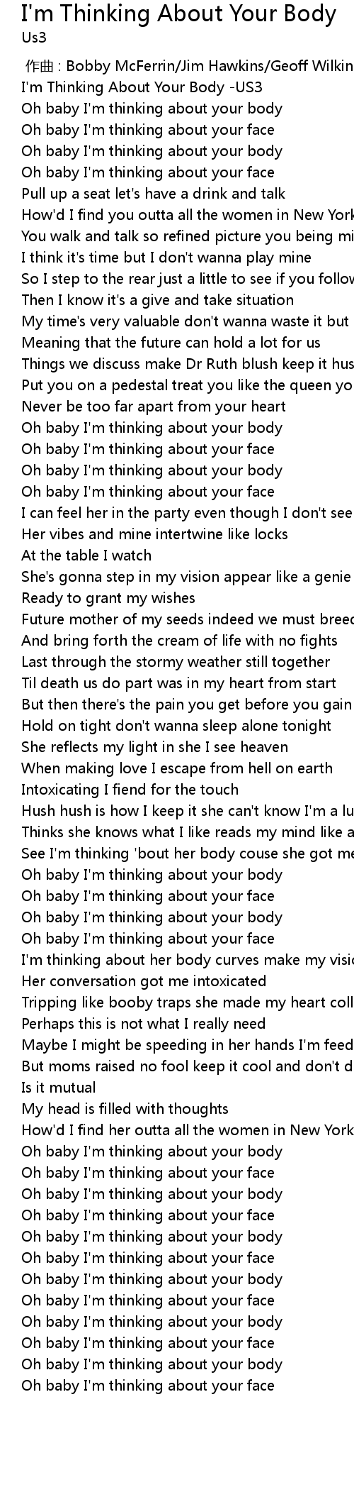 | [03:11.748] | Oh baby I' m thinking about your body |