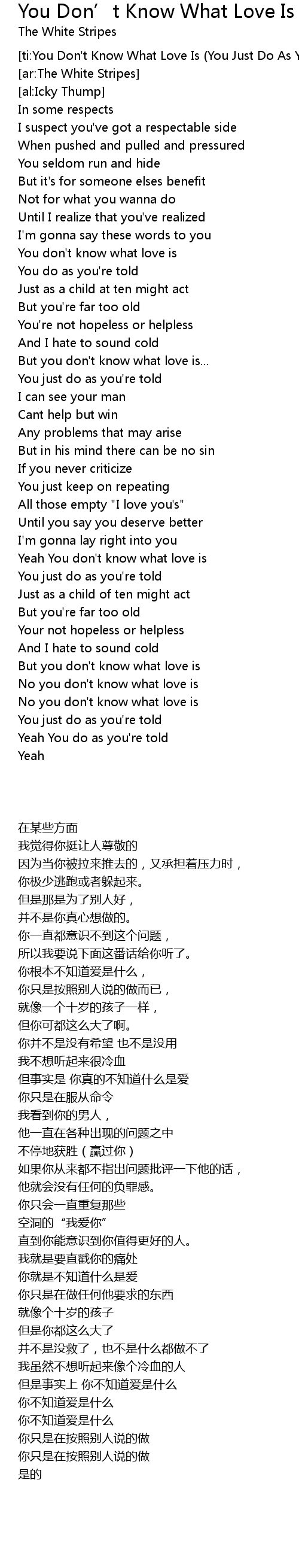 [ti:You Don't Know What Love Is (You Just Do As You're Told)] |