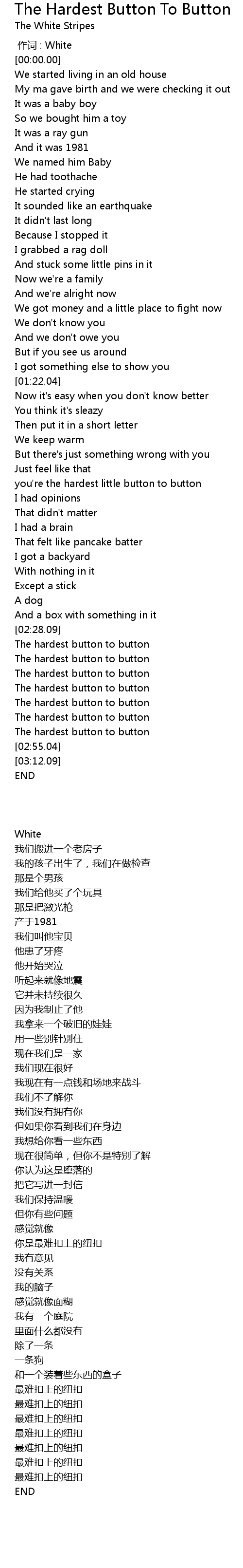 | [02:34.00] | The hardest button to button |