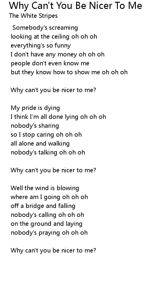Why Can't You Be Nicer To Me Lyrics