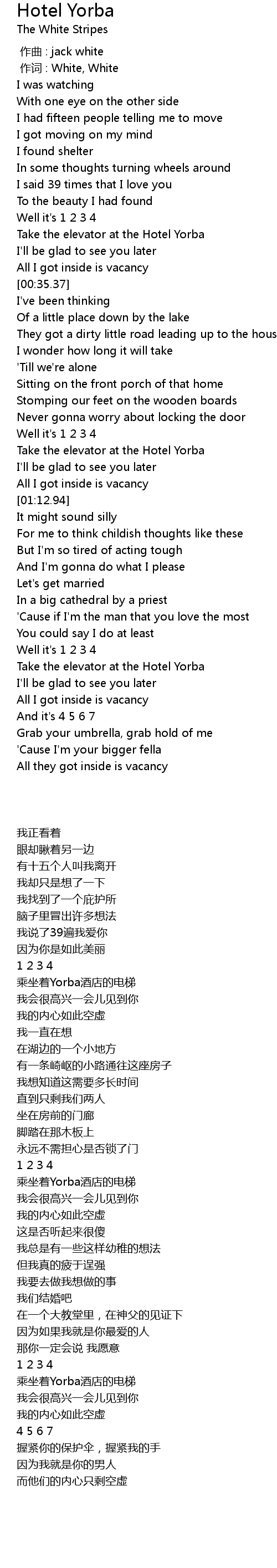 | [00:25.88] | Take the elevator at the Hotel Yorba |