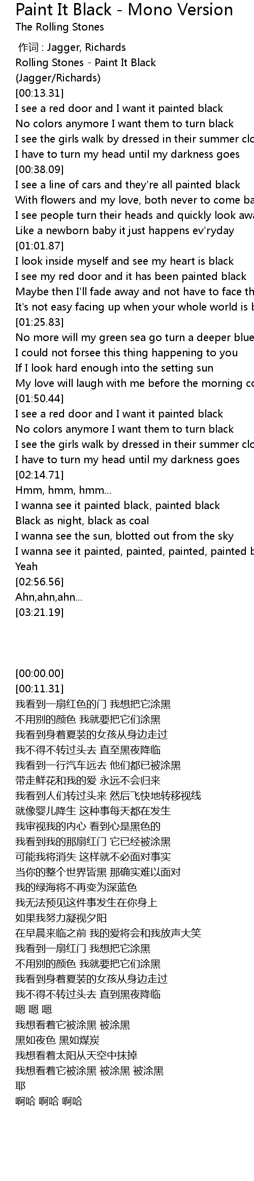 | [02:50.49] | I wanna see it painted, painted, painted, painted black |