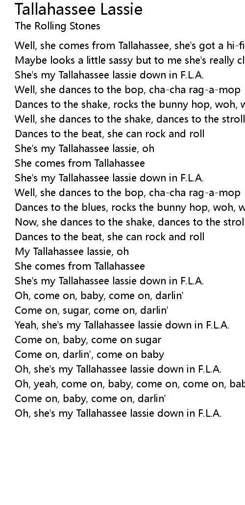 Oh, she's my Tallahassee lassie down in F.L.A.
