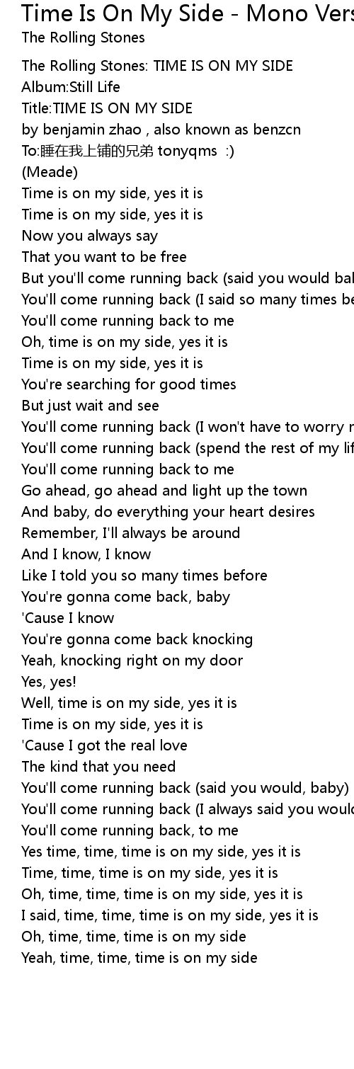 | [01:48.33] | Time is on my side, yes it is |