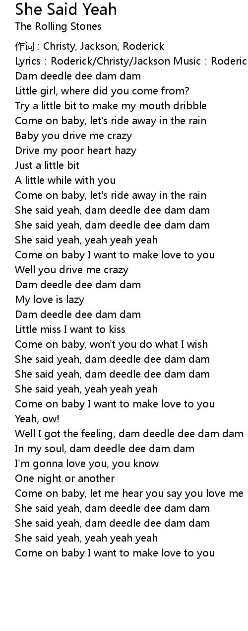 | She said yeah, dam deedle dee dam dam | |