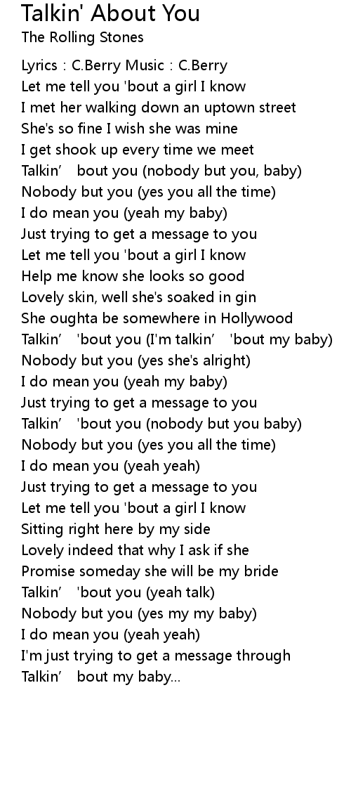 | Talkin' ' bout you I' m talkin' ' bout my baby | |