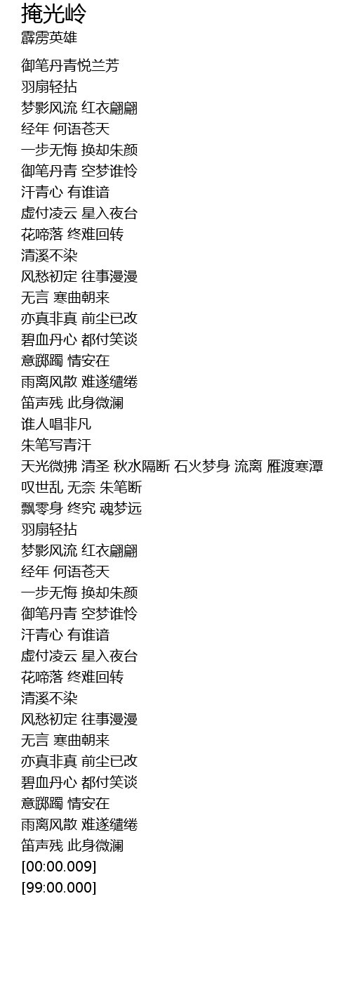[01:20.35] 天光微拂 清圣 秋水隔断 石火梦身 流离 雁渡寒潭