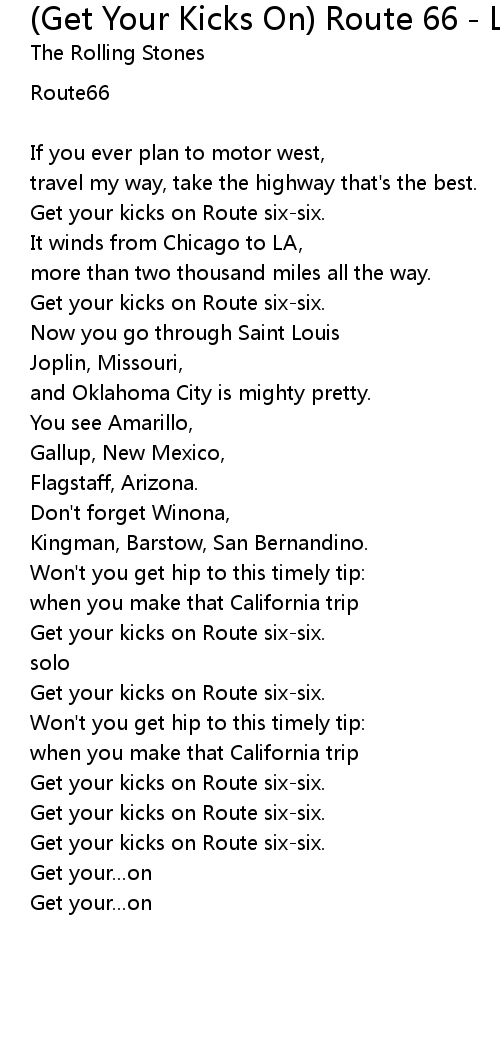(Get Your Kicks On) Route 66 - Live "December's Children" Version Lyrics