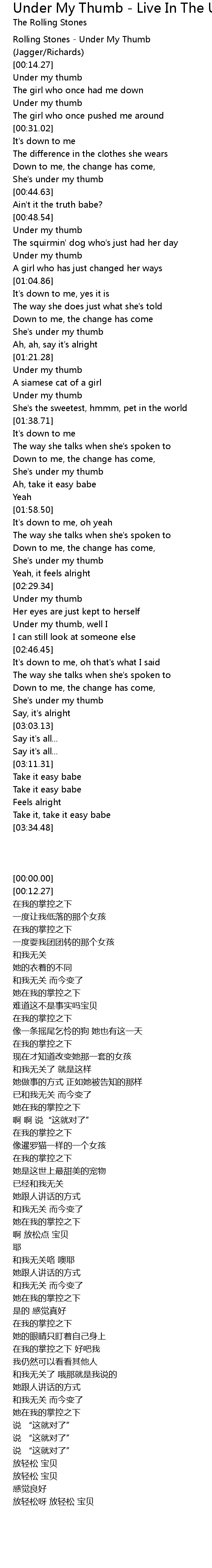 Under My Thumb - Live In The UK / 1966 Lyrics