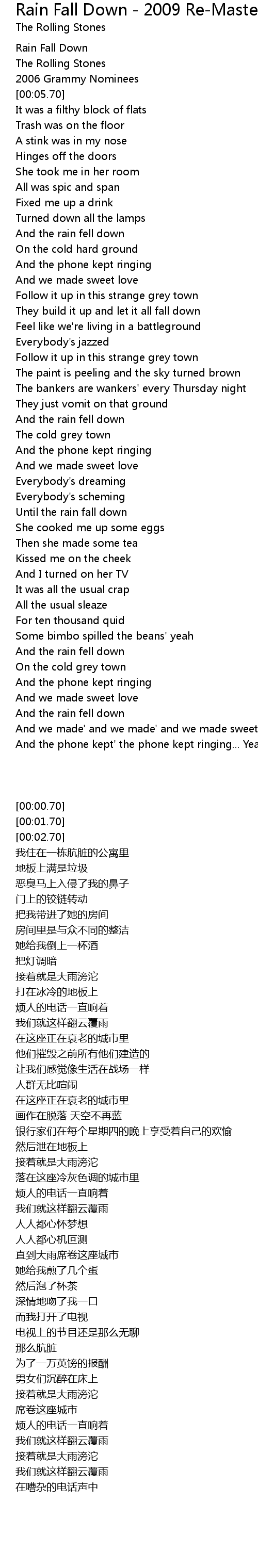 Rain Fall Down - 2009 Re-Mastered Digital Version Lyrics