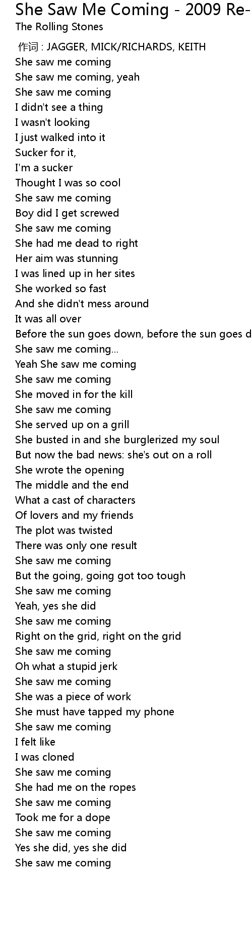 | Song | She Saw Me Coming - 2009 Re-Mastered Digital Version |