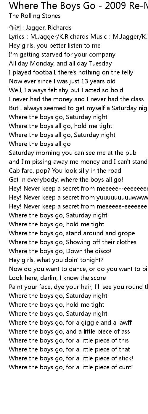 | Song | Where The Boys Go - 2009 Re-Mastered Digital Version |