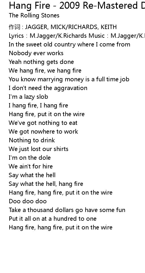| 作词 : JAGGER, MICK/RICHARDS, KEITH | |