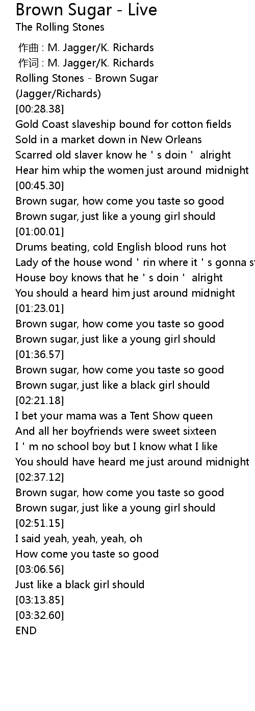 | [00:00.00] | Rolling Stones - Brown Sugar |