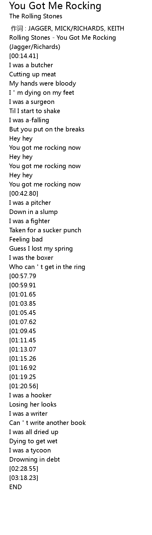 | [00:00.00] | Rolling Stones You Got Me Rocking |