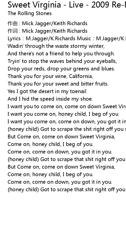 | Song | Sweet Virginia - Live - 2009 Re-Mastered Digital Version |