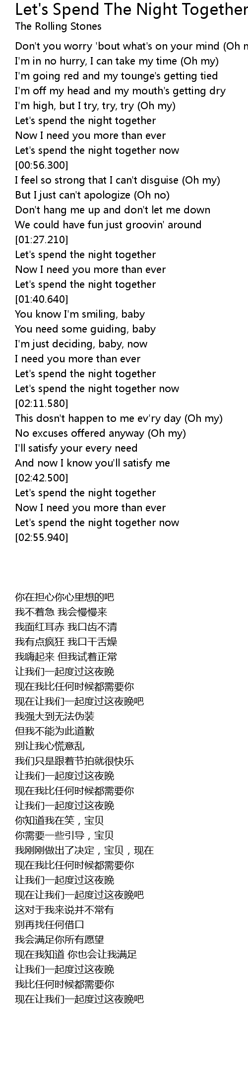 | [02:52.230] | Let' s spend the night together now |
