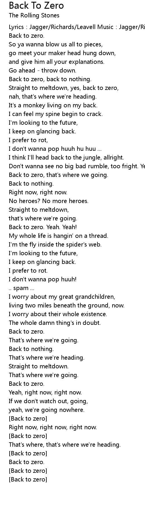 | Straight to meltdown, yes, back to zero, | |