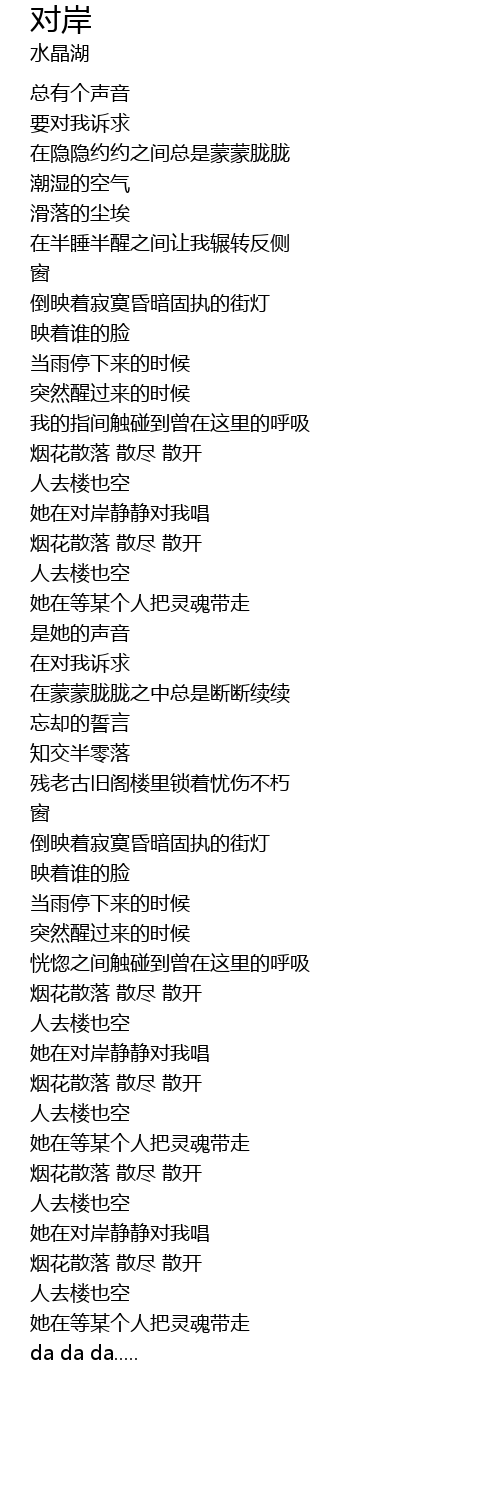 | [02:47.54] | tā zài duì àn jìng jìng duì wǒ chàng |