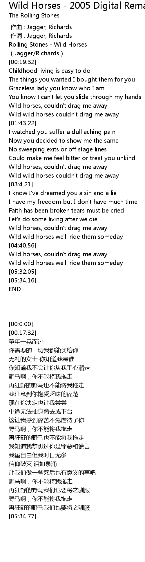 | [00:0.00] | Rolling Stones - Wild Horses |