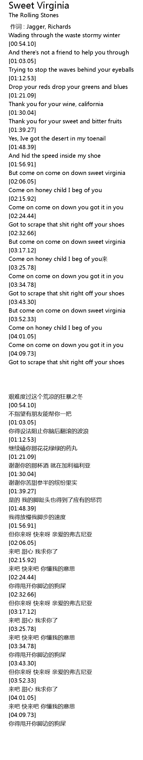 | [03:45.92] | But come on come on down sweet virginia |
