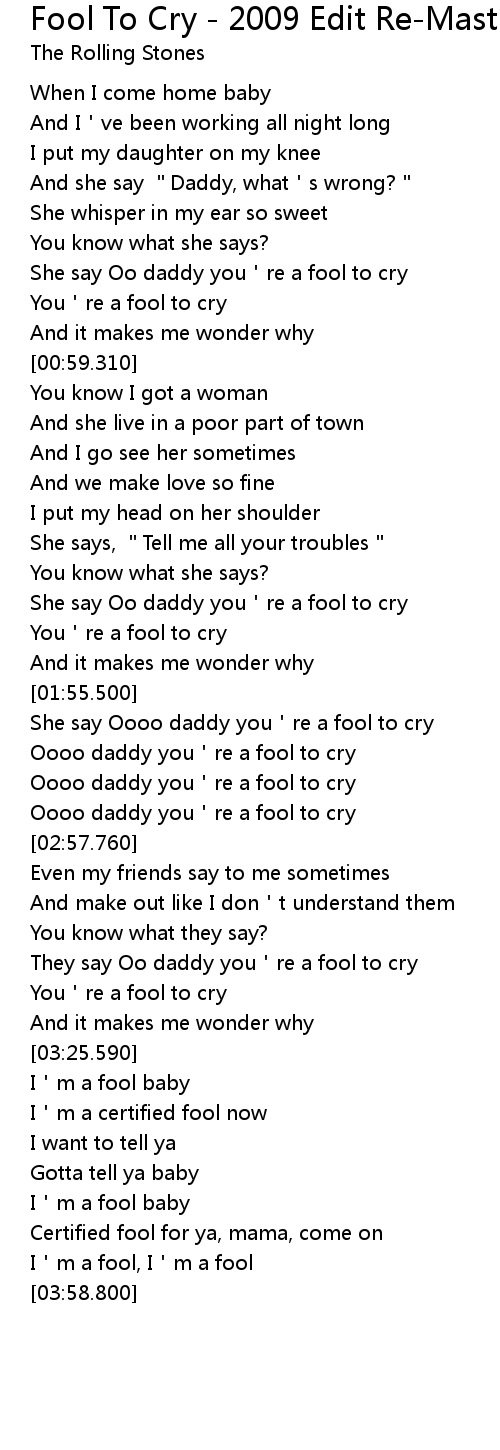 | [00:42.880] | She say Oo daddy you re a fool to cry |