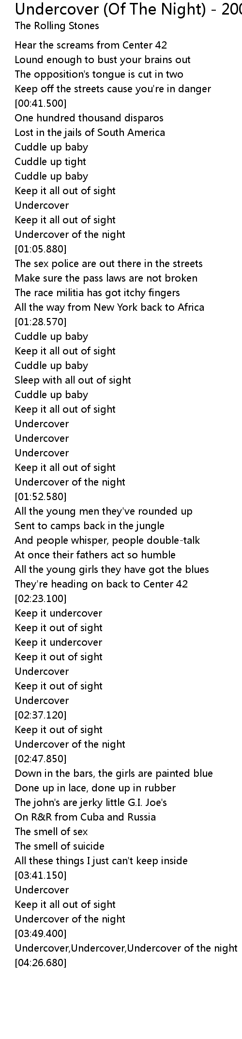 | [04:20.890] | Undercover, Undercover, Undercover of the night |