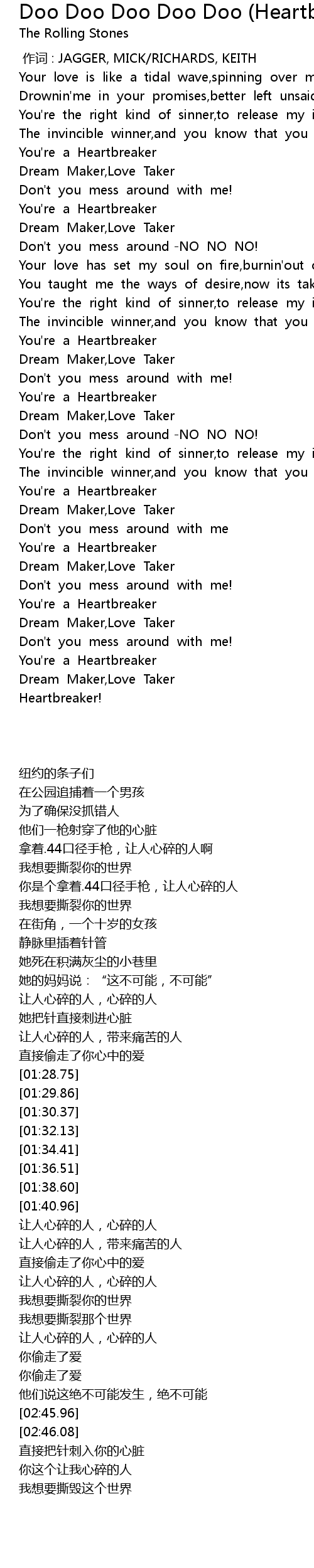 | [00:00.00] | zuò cí : JAGGER, MICK RICHARDS, KEITH |