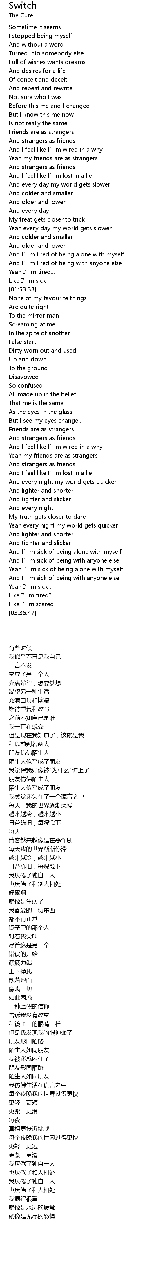 | [01:50.17] | Like I' m sick |