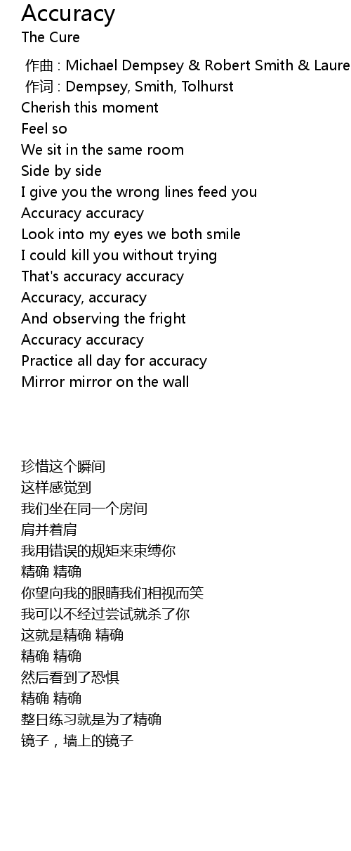 | [00:01.00] | zuo ci : Dempsey, Smith, Tolhurst |