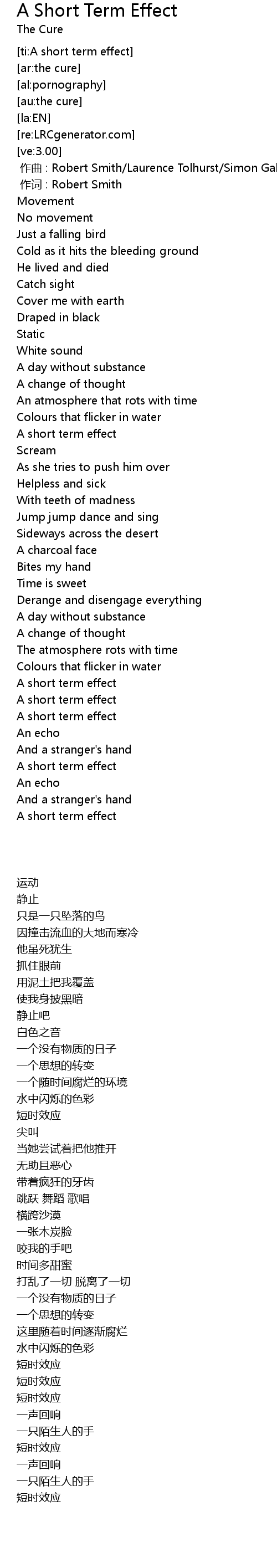 | [00:01.00] | zuo ci : Robert Smith |