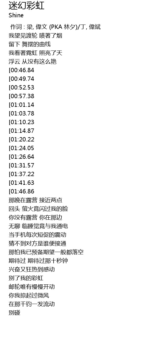 | [02:37.36][01:26.64] | 为何我的彩虹 |